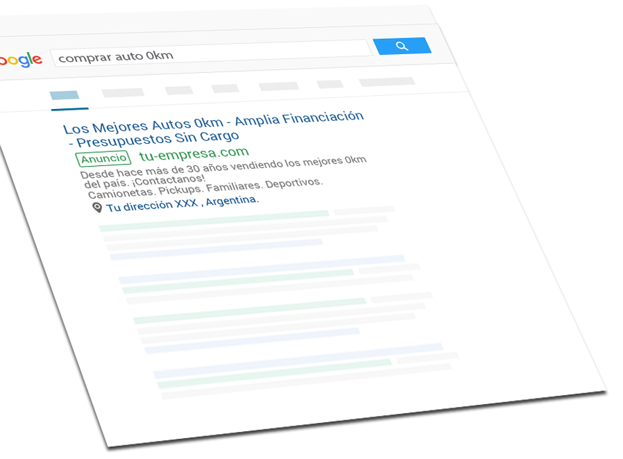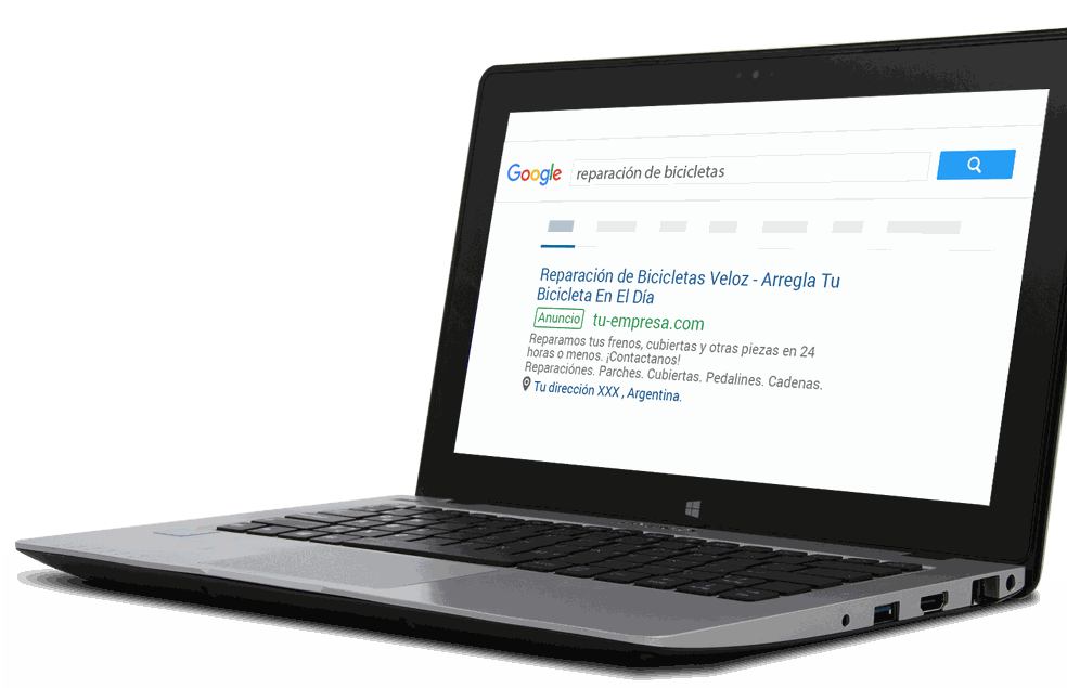 Las personas encontrarán tu negocio cuando busquen en Google lo que ofrecés. Tu anuncio puede aparecer arriba de los resultados de búsqueda cada vez que alguien escriba en Google palabras que coincidan con tus palabras claves, ya sea desde una PC, tablet o smartphone